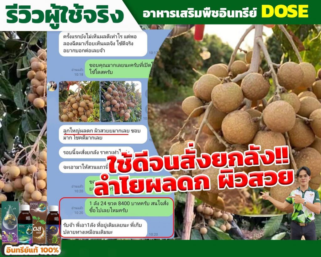 Dose โดส ขายดีมาก ลูกค้าที่ใช้แล้วต่างก็กลับมาซื้อซ้ำ